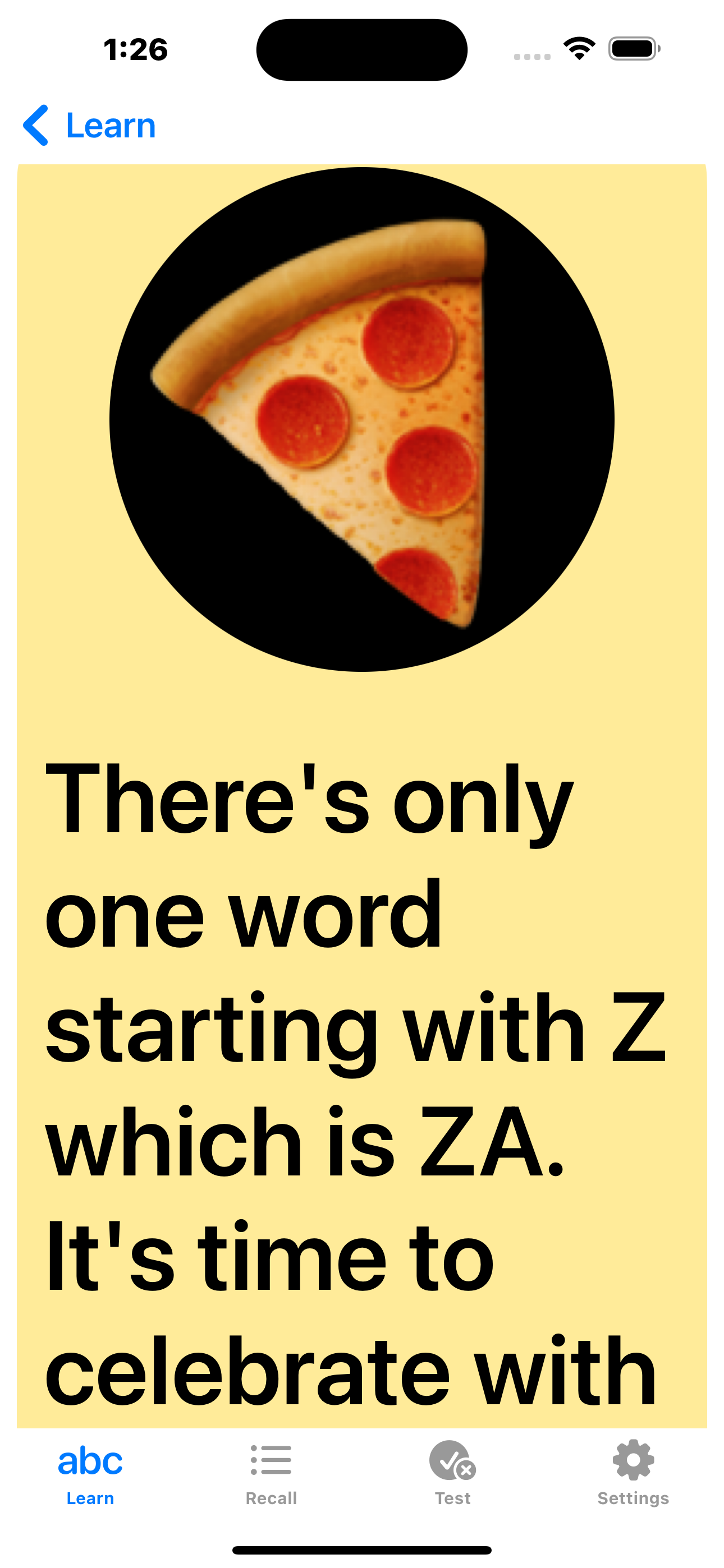3 types of quizzes of gradually increasing levels of difficulty with a total of 200+ questions which take you step by step towards better word retention.